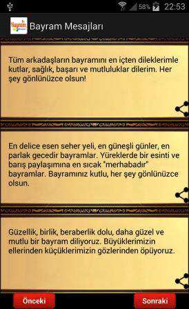 ![]() Bayram Mesajları Apk İslam dünyasının bayramlarından olan "Ramazan" ve "Kurban" bayramlarında mesaj yazaarak zaman kaybetmek istemeyenler için harika bir başarılı bir Android hazır mesaj uygulamasıdır. En sevdiklerine en özel mesajları göndermek için "Bayram Mesajları Apk" uygulamasını telefonunuza yükleyerek eş, dost ve akrabalarının bayramını hızlı ve kolay bir biçimde anında kutlayabilirsiniz. Bayram Mesajları Android uygulaması içinde birbirinden farklı altmış adet mesaj bulunmaktadır. İçlerinden beğendiğiniz Bayram mesajının üzerine dokunarak mesajı ister kısa mesaj (SMS) isterseniz diğer mesajlaşma uygulamaları üzerinden veya sosyal ağlardan anında gönderebilirsiniz. |