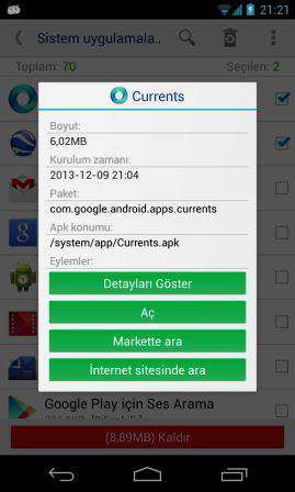 ![]() Root'lu Android Telefonlar İçin Sistem Silme Uygulaması Android yüklü cihazınız "Root"lu ise telefonunuzda muhakkak olması gereken harika bir sistem uygulaması kaldırma programıdır. Sistem uygulamalarını kaldırmanın yanında, kullanıcı uygulamalarını kaldırmayı, uygulamaları hafıza kartına ve telefona taşımayı, hafıza kartındaki "apk" dosyalarını tarama, kurma, silme işlemlerini ve root yapma desteğini sizlere sunan gelişmiş ve çok beğenilen bir uygulamadır. Uygulamanın boyutuna bakarsanız bu ne yapabilir dilebilirsiniz belki, lakin boyutuna göre gerçekten çok güzel işler yapmaktadır. Benzer diğer ürünlerle karşılaştırması: 1. Güvenli: Kaldırıldıktan sonra kararsızlığa neden olabilecek uygulamaları filtreledik ve yüzlerce cihazda test ettik. Böylece güvenli bir şekilde kullanabilirsiniz, ancak üreticiler çok fazla özelleştirme yaptığından dolayı bundan %100 emin olamıyoruz. Ayrıca kaldırdığınız tüm uygulamaları otomatik olarak yedekliyoruz, böylece ihtiyacınız olduğunda Geri Dönüşüm Kutusu’ndan geri yükleyebilirsiniz; 2. Temiz: Tüm uygulamaları [Silinebilir], [Saklanmalı], [Anahtar modül] olarak sınıflandırdık. Böylece temiz ve sorunsuz bir şekilde kaldırılabilecek uygulamayı seçebilirsiniz; 3. Kolay: Birden fazla uygulamayı tek seferde kolayca kaldırmanızı sağlıyoruz; 4. Küçük: Uygulama için ayrılan belleği uygulamadan çıktıktan sonra serbest bırakıyoruz. Bu yüzden küçük bir uygulama; Yapımcı açıklaması: Biz hiçbir zaman en iyisi olduğumuzu söylemiyoruz, ancak elimizden gelenin en iyisini yapıyoruz. Herhangi bir yorum veya öneriniz varsa, uygulama içerisinden Geri Bildirim’i kullanarak iletebilirsiniz. NOT: Reklamlar rahatsız ediyorsa, ayarlardan devre dışı bırakabilirsiniz. ![]() |