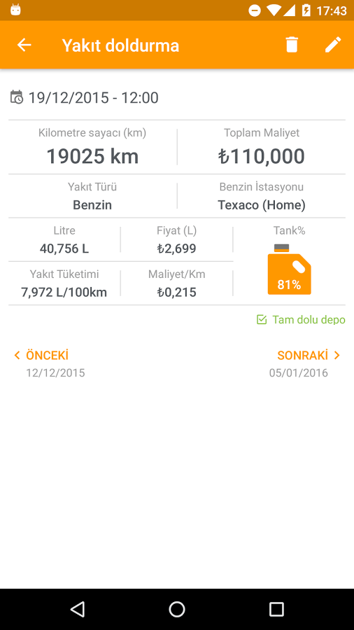 ![]() Drivvo - Araç Yönetimi Aracına önem veren sürücüler için vazgeçilmez bir uygulama hazırlayan Android, Drivvo - Araç Yönetimi uygulamasını devreye soktu. Ulaşım konusunda hazırlanan en kapsamlı ve kalitelı uygulamalardan biri olan Drivvo - Araç Yönetimi size aracınız ile ilgili birçok konuda yardımcı olacaktır. Uygulama sayesinde aracınızın tüm giderlerini kontrol altında tutabilir ve kolayca bu bilgilere ulaşabilirsiniz. Drivvo - Araç Yönetimi uygulaması, yakıt harcamanızdan bakım için harcadığınız masraflara kadar bir çok bilgiyi içinde barındırır. Bu uygulama ile aracınız ile ilgili raporlar oluşturabilir, gerçekleştireceğiniz işlemler ile ilgili önemli notlar alabilirsiniz. Android uygulaması olan Drivvo - Araç Yönetimi’nin kullanımı da oldukça kolaydır. Yakıt durumunuzu takip etmek istiyorsanız yakıt ikmalini kaydetmeniz yeterli olacaktır. Böylece durumunuzu istediğiniz zaman kontrol edebilirsiniz. Aracınızın özel giderleri ve gerçekleştireceğiniz işlemler ile ilgili raporlar haırlamak Drivvo - Araç Yönetimi sayesinde çok kısa sürecektir. Bu uygulama size aracınız ile ilgili kaydettiğiniz bilgilerin grafiklerini de sunacaktır. Cep telefonu ve tabletlerinizde kolaylıkla kullanabileceğiniz Drivvo - Araç Yönetimi uygulaması ile aracınızın günlük masraflarını da güncel olarak tutabilirsiniz. Sizin anlayabileceğiniz bir dille basit anlatım sağlayan bu Android uygulaması, modern tasarımı ile gözünüze de hitap edecektir. Aracınızla ilgili mali her konuda sağ kolunuz gibi olacak Drivvo - Araç Yönetimi uygulamasını size Apk olarak indirme konusunda da yardımcı oluyoruz. Sitemizde yer alan link sayesinde bu uygulamaya kısa sürede sahip olabilirsiniz. |