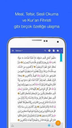 Yeni Diyanet İşleri Başkanlığı Android Kur'an-ı Kerim Uygulaması Diyanet İşleri Başkanlığı tarafından hazırlanmış Android Kur'an-ı Kerim uygulamasıdır. Bu güzel uygulama Kur'an-ı Kerim'i ve mealini okumak için, istenilen surenin istenilen ayetine kolayca erişmenizi sağlamak gayesi ile anlaşılır ve kolay kullanılır olarak sizlerin kullanımına sunulmuştur. Diyanet Kur'an-ı Kerim Özellikleri:· Kur'an-ı Kerim; Sure, Cüz, Ayet ve Hatim okuma.· Konularına göre Kur'an-ı Kerim fihristi.· Sure Ayet Arama.· Ayet ve Sayfa tekrarı.· Sureler ile ilgili özet bilgiler.· Notlar ve Kaldığınız yerleri yönetebilmek için yer imleri.· İstenilen Ayeti Arapça ve Türkçe e-mail gönderebilme.· Ayet meal görebilme. NOT: Uygulama orijinal boyutu 564 MB'tır. Wifi bağlantı ile indirmeniz tavsiye olunur! Bu uygulama Diyanet İşleri Başkanlığı tarafından hazırlanmış olup, Kur'an-ı Kerim’in meal ve tefsiriyle birlikte okunmasına yönelik istifadenize sunulmuştur. Özellikleri : * Kur'an-ı Kerim; Sure, Cüz, Ayet ve Hatim okuma. * Konularına göre Kur'an-ı Kerim fihristi. * Sure, Cüz ve Ayet Arama * Sureleri, alfabetik, Kur’an’daki sırasına ve iniş sırasına göre sıralama özelliğ * Sureler ile ilgili özet bilgiler * Gelişmiş İnteraktif Arama Özelliği: Uygulama içerisinde yer alan kelimeleri hem Arapça hem de Türkçe arama özelliği. * Kur’an Fihristi * Ayetlerle ilgili kişisel fihrist oluşturabilme * Kur’an’da yer alan secde ayetlerini görebilme * Kur’an Sözlüğü * Gelişmiş yer imi özelliği. Çeşitli renklendirme ile yer imi oluşturabilme * İnteraktif notlar özelliği. * Yatay-dikey ekran desteği * Gece okuma özelliği * İstenilen Ayeti Arapça ve Türkçe olarak paylaşabilme * Ayet-Ayet meal ve tefsir görebilme * Kur’an sayfalarında hızlı sayfa ve cüz erişimleri * Kur’an sayfalarının arkasındaki temaları değiştirebilme * Ekran parlaklığını ayarlayabilme * Font büyüklüklerini değiştirebilme |